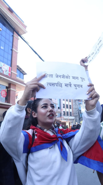 प्रदर्शनकारीहरुले ‘जेनजीको माग हरायो, निर्वाचन भनि करायो’, ‘अतिभो राजनीतिक खेल, आमा सरकार फेल’, ‘घाइतेका माग पूरा गर’, ‘जेन–जीको माग चुनाव होइन सुशासन हो’ लगायत नारा लेखिएका प्लेकार्ड बोकेका छन् । केही जेन–जी समूहहरुले मुलुकमा विद्यमान भ्रष्टाचार नियन्त्रण गरी सुशासन कायम गर्नुपर्ने, जेन–जी विद्रोहमाथि भएको दमनमा संलग्नहरुलाई कारबाही गर्नुपर्ने माग राख्दै आएका छन् । आफ्ना मागहरु पूरा नभएसम्म आन्दोलन जारी राख्ने उनीहरुको चेतावनी छ ।