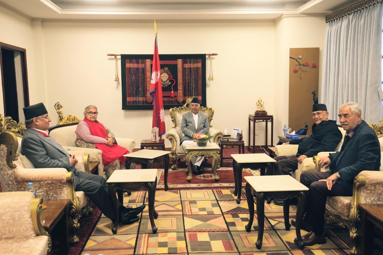 राष्ट्रपतिसँग प्रधानमन्त्रीसहित तीन दलका शीर्ष नेताको भेट