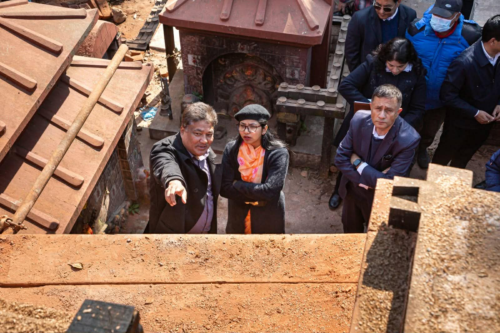 अनुगमनका क्रममा सहरी योजना आयोगका उपाध्यक्ष डा. सुमननरसिंह राजभण्डारी, विभागका प्रमुख कुमारी राई र वरिष्ठ इञ्जिनियर रविन्द्र रिजालले पुनःनिर्माणको प्रक्रिया, निर्माण सामग्री र शैली र ढाँचाका विषयमा जानकारी गराउनुभएको थियो ।
