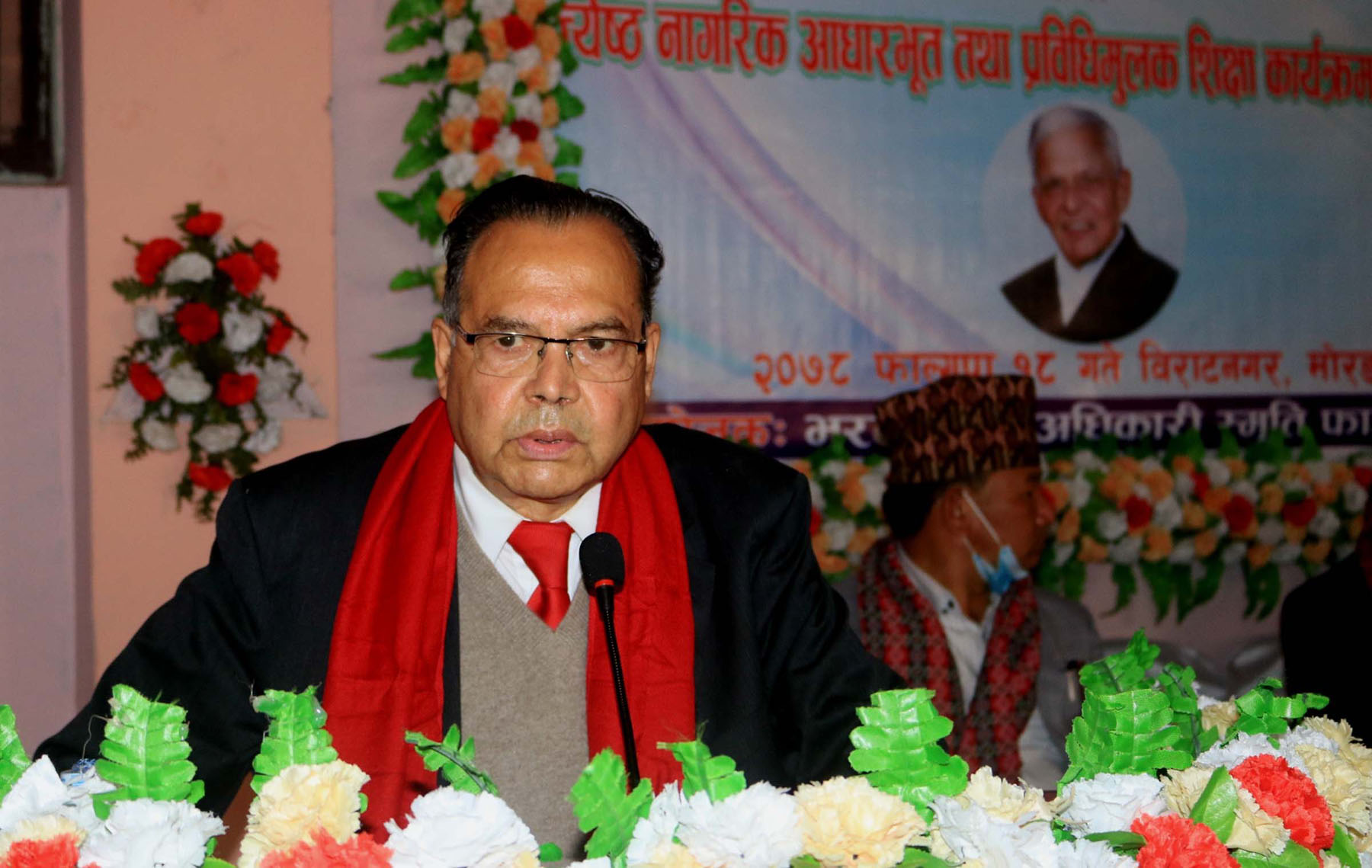 भरतमोहन अधिकारी स्मृति फाउण्डेशनद्वारा आज यहाँ आयोजित स्व अधिकारीको तेस्रो स्मृति दिवसका अवसरमा ज्येष्ठ नागरिक आधारभूत तथा प्रविधिमूलक शिक्षा कार्यक्रमको उद्घाटन कार्यक्रममा उहाँले स्व अधिकारीले सफल अर्थमन्त्रीका रूपमा थुप्रै उदाहरण प्रस्तुत गरिसकेको स्मरण गर्दै नेपाली राजनीतिमा सडक र सदनमा पनि उहाँको भूमिकाको प्रसंशा गर्नुभयो ।