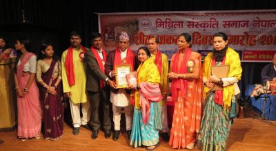 ललितपुर । ‘सीता जयन्ती’ को अवसरमा मैथिली ‘अर्चनाकृत रामायण’ की लेखिका एवम् पत्रकार अर्चना झालाई सीता’ उपाधिसहित सम्मान गरिएको छ