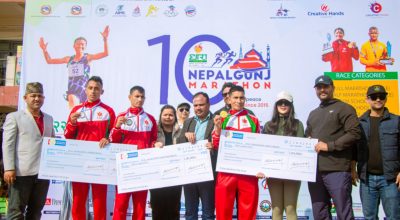 जानकी, (बाँके) । दशौँ धारा नेपालगञ्ज म्याराथनको उपाधि पुरुषतर्फ नेपाली सेनाका खडकबहादुर खड्काले तथा महिलातर्फ सन्तोषी श्रेष्ठले जित्नुभएको छ ।