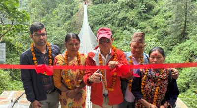 म्याग्दी । मङ्गला गाउँपालिका–४ को न्यूखोलामा निर्माण भएको झोलुङ्गे पुलबाट करिब दुई सय परिवार लाभान्वित भएका छन् । पुलले एक