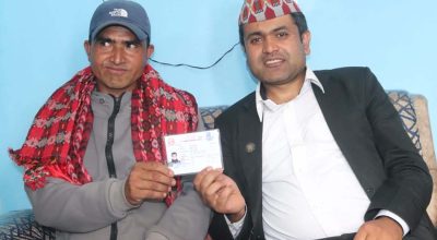बुबाआमा दुवै पत्ता नलागेका इन्द्रबहादुरले बुधबार जिल्ला प्रशासन कार्यालय खोटाङबाट वपंशजका आधारमा नेपाली नागरिकताको प्रमाणपत्र प्राप्त गर्नुभयो ।