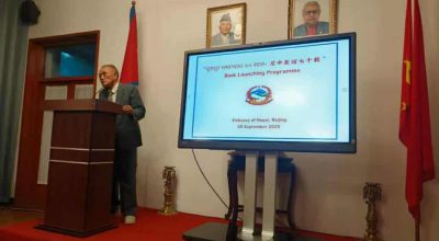 काठमाडौँ। नेपाल–चीन मिडिया फोरमद्वारा प्रकाशित ‘सुमधुर सम्बन्धका ७० साल’ बेइजिङमा विमोचन गरिएको छ । आज बेइजिङस्थित नेपाली दूतावासको सभाकक्षमा विमोचन