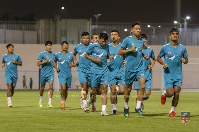 काठमाडौं । नेपाली राष्ट्रिय फुटबल टोलीले आज ओमानसँग मैत्रीपूर्ण अभ्यास खेल खेल्दैछ । नेपालले कतारको सुहिम बिन हामद स्टेडियममा ओमानविरुद्ध खेल्न लागेको हो । खेल नेपाली समय अनुसार राति ९ः४५ बजे सुरु हुनेछ । नेपालले एएफसी एसियन कप छनोट अघि दोहामा तयारी गरिरहेको ओमानसँग मैत्रीपूर्ण खेल खेल्न लागेको हो ।