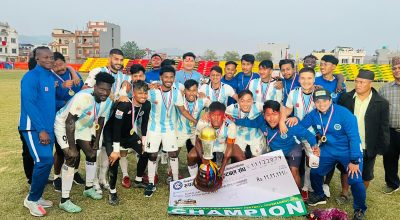 बुटवल । बुटवलमा सम्पन्न २२औँ संस्करणको तिलोत्तमा गोल्डकप फुटबल प्रतियोगिताको उपाधि मनाङ मस्र्याङ्दी क्लबले हात पारेको छ । देवीनगरस्थित एन्फा