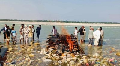भुजेला घाटस्थित महाकाली नदीमा प्रमुख जिल्ला अधिकारी लक्ष्मण ढकाले राष्ट्रिय झन्डा ओढाउनुका साथै सशस्त्र प्रहरीले सलामी दिएर राष्ट्रिय सम्मानका साथ