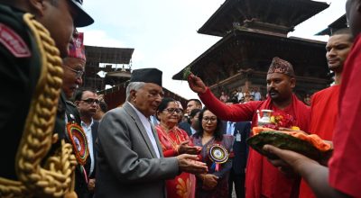 पाटन (ललितपुर): राष्ट्रपति रामचन्द्र पौडेलले यहाँस्थित कृष्णमन्दिरमा भगवान् श्रीकृष्णको पूजाआराधना गर्नुभएको छ । त्यसपश्चात् उहाँलाई मन्दिरका पुजारीले फूल प्रसाद प्रदान