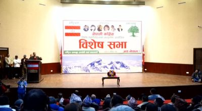 नेपाली कांग्रेसमा विशेष महाधिवेशन पक्षधरको भेला राष्ट्रिय सभागृहमा सुरु भएको छ । भोलि बस्ने केन्द्रीय समितिलाई दबाब दिनको लागि आज