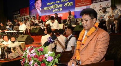 काठमाडौंँ । गीतकार टेक तामाङको सांगीतिक साँझ भव्य रुपमा सम्पन्न भएको छ । कमलादीस्थित प्रज्ञा प्रतिष्ठानको प्रेक्षालयमा असार १४ गते