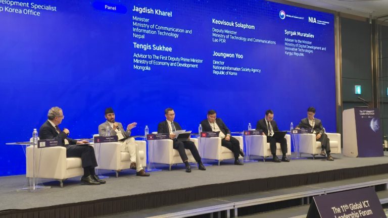 काठमाडौँ: सञ्चार तथा सूचना प्रविधिमन्त्री जगदीश खरेलले ‘ग्लोवल आइसिटी लिडरसिप फोरम’ नेपालका लािग उपलब्धीमूलक रहेको बताउनुभएको छ । गणतन्त्र कोरियाको सिओलमा बुधबार आयोजना भएको ११ औं ‘ग्लोवल आइसिटी लिडरसिप फोरम’मा बोल्दै उहाँले डिजिटल नेपाल र डिजिटल ट्रान्सफरमेसनका लागि लिडर्सिप फोरम उपलब्धिपूर्ण र फलदायी भएको उल्लेख गनुभयो । उहाँले भन्नुभयो,“डिजिलट