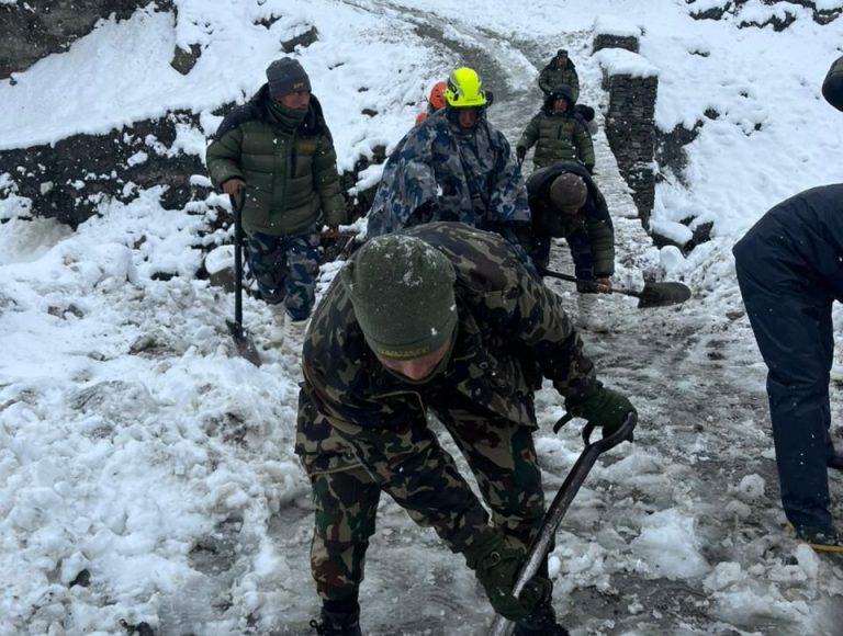 नेपाली सेनाको नयाँ भैरवीदल गुल्मबाट खटिएको उद्धार टोलीले मनाङ्ग जिल्लाको तिलिचो, खाङ्गसार, पिसाङ्ग, माथिल्लाे मनाङ तथा हुम्दे इलाकाहरुमा कात्तिक १० गतेदेखि भएको भारी हिमपातको कारण विभिन्न स्थानमा फसेका २०० भन्दा बढी बिदेशी पर्यटक सहित करिब एक हजार ५०० जना नागरिकलाई उद्धार गरेकाे छ । मनाङ्गस्थित स्थानीय प्रशासन, जनप्रतिनिधि, सशस्त्र प्रहरी