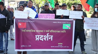 काठमाडौँ । वैज्ञानिक समाजवादी कम्युनिष्ट पार्टी, नेपालले माईतीघरमा नयाँ सामाजिक व्यवस्था र नयाँ संविधानको माग गरी प्रदर्शन गरेको छ ।
