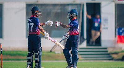 काठमाडौँ । आइसिसी विश्वकप क्रिकेट लिग–२ अन्तर्गत यूएईमा जारी एकदिवसीय शृङ्खलामा नेपाल अमेरिकासँग पराजित भएको छ । भर्खरै सम्पन्न खेलमा नेपाल चार विकेटले पराजित भएको हो । नेपालले दिएको २७२ रनको लक्ष्य अमेरिकाले ४९ ओभरमा ६ विकेट गुमाएर भेट्टायो । नेपालका बलर नन्दव यादव महँगा सावित भए । अमेरिकालाई १२ बलमा