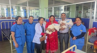 काठमाडौं । अत्तरखेल स्थित नेपाल मेडिकल कलेज (एनएसमी) ले समय अगावै जन्मिएका जुम्ल्याहा शिशुको २ महिना लामो सघन उपचारपछि ज्यान