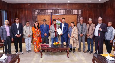 काठमाडौँ, ४ चैत । प्रधानमन्त्री केपी शर्मा ओलीलाई गैह्रसरकारी संस्था महासङ्घ नेपालको नवनिर्वाचित नेतृत्वले ११ औँ महाधिवेशन तथा राष्ट्रिय नागरिक