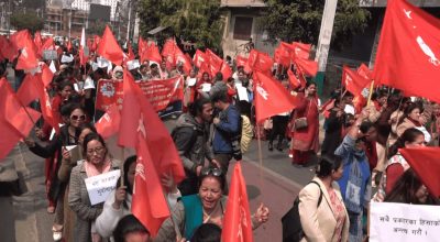 काठमाडौँ । ११५ औं अन्तर्राष्ट्रिय श्रमीक महिला दिवसको अवसरमा प्रदर्शन भएको छ । शनिवार काठमाडौंको माईतीघर मण्डलामा अखिल नेपाल महिला