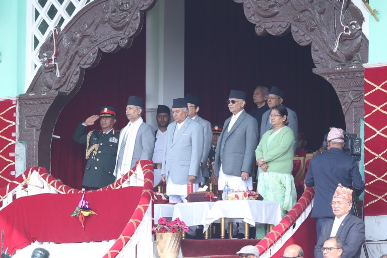 काठमाडौँ । राष्ट्रपति रामचन्द्र पौडेल राष्ट्रिय प्रजातन्त्र दिवस, २०८१ का अवसरमा मूलसमारोह समितिले आज नेपाली सैनिक मञ्च टुँडिखेलमा आयोजना गरेको