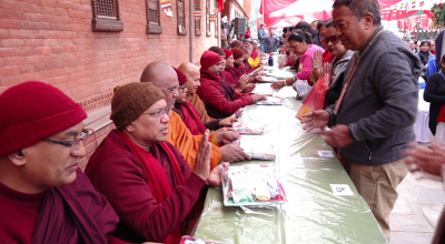 काठमाडौँ । स्वयम्भूस्थित आनन्दकुटी विहारमा आज भिक्षुसङ्घलाई सामूहिक सङ्घदान गरिएको छ । उदाय् समाजको संयाजकत्वमा भएको कार्यक्रममा तीन सय ५०