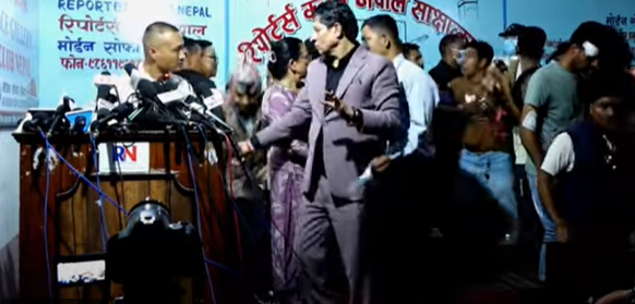 काठमाडौं । आफूलाई जेनजी समूहको अगुवा बताउने ‘हामी नेपाल’ संस्थाका सञ्चालक सुदन गुरुङले आइतबार रिपोर्टर्स क्लबमा आयोजना गरेको पत्रकार सम्मेलन हंगामामा समाप्त भएको छ । राष्ट्रपति कार्यालयसँग भएको वार्ताको विवरण सुनाउँदै गुरुङले सरकार माग पूरा नगरे खारेज गर्ने चेतावनी दिएपछि पत्रकारहरूले प्रश्न राख्दा वातावरण तनावग्रस्त बन्यो । गुरुङले केही प्रश्नहरूलाई