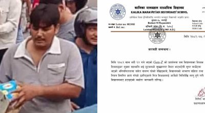काठमाडौँ । बुटवलको कालिका मानवज्ञान स्कुलले शिक्षक शिवशंकर शुक्लालाई कारबाही गरी निष्कासन गरेको छ । जेनजी आन्दोलनको नाममा बुटवलको भाटभटेनीमा