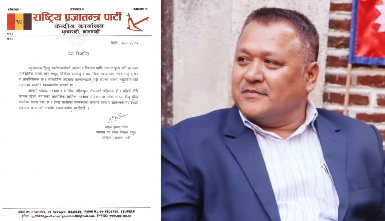 काठमाडौँ । राष्ट्रिय प्रजातन्त्र पार्टी (राप्रपा)ले धरानमा गोरु काट्ने र सामाजिक सञ्जालमा विद्वेष पैदा गर्ने घटना आपत्तिजनक रहेको बताएको छ । सो पार्टीका प्रवक्ता मोहन कुमार श्रेष्ठले एक विज्ञप्ती जारी गर्दै हिन्दुहरुको आस्था र विश्वासमाथि आघात पर्ने गरी सामाजिक सद्भाव खल्बल्याउने नियतबाट उक्त घटना गरिएको भन्दै राप्रपाले दुःख व्यक्त गरेको