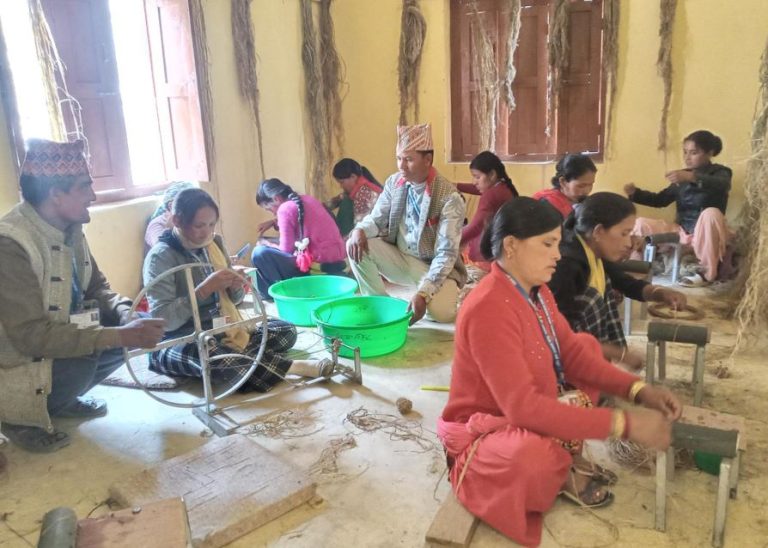 बझाङ । जिल्लाको तलकोट गाउँपालिका–६ का स्थानीय महिलाले गाउँघरमा खेर गइरहेको अल्लो प्रशोधन गरी अल्लोको धागो र अल्लोको कपडा बनाई आयआर्जन गर्न थालेका छन् । यस क्षेत्रमा प्रशस्तमात्रामा अल्लो उपलब्ध हुने भए तापनि त्यसबाट कसैकसैले डोरी बनाएर गाईबस्तुलाई बाँध्नका लागि प्रयोग गर्थे भने बाँकी ज्ञान सीपको अभावका कारण जङ्गलमै कुहिएर