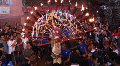भक्तपुर । साँझ ढल्किँदै थियो । नेपाल संवत् तिथिबमोजिम ञंलाथ्व पुन्हि अर्थात् इन्द्रजात्राको भोलिपल्ट भाद्र शुक्ल पूर्णिमाको साँझ मध्यपुरथिमि नगरपालिका–४