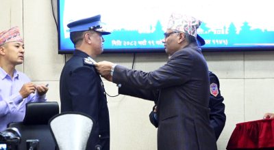 नवनियुक्त प्रहरी महानिरीक्षक (आईजीपी) चन्द्रकुवेर खापुङलाई दज्र्यानी चिन्ह प्रदान गरिएको छ ।