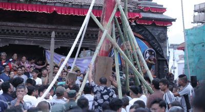 बिहीवार विहान १०ः३१ बजे पूजाआज होमसहित क्षमा पूजा गरी (ध्वजोत्थान) ध्वजा पताकाहरुले सजिएको लिङ्गोलाई डोरीको सहायताले तानेर उठाएसँगै काठमाडौंमा विधिवत
