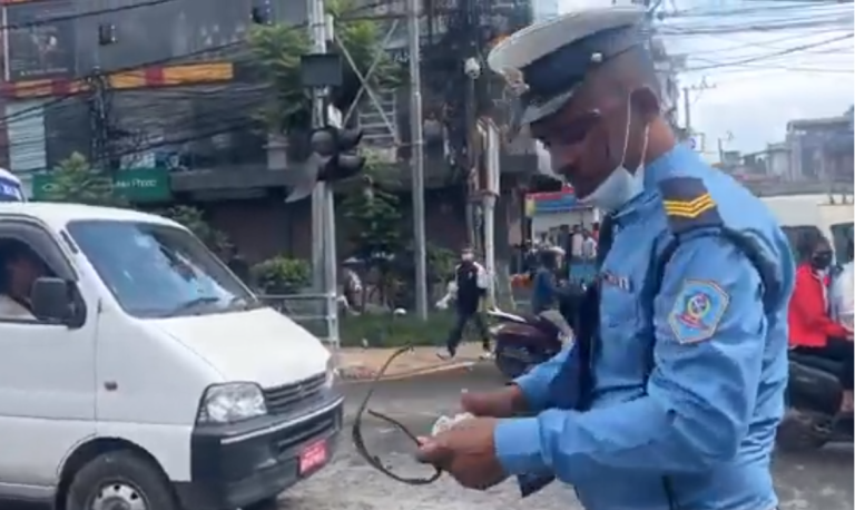 काठमाडौँ । ललितपुरको चापागाउँ दोबाटोस्थित बीच सडकमा ट्राफिक प्रहरी कुट्ने युवक पक्राउ परेका छन् । ड्युटीमा खटिएका ट्राफिक प्रहरी हवलदार सुनिल शाहमाथि निर्घात कुटपिट गर्ने ताप्लेजुङ घर भई चापागाउँ दोबाटोमा मोबाइल पसल गर्ने २६ वर्षीय विश्वास राईलाई प्रहरीले पक्राउ गरेको हो । शुक्रबार दिउँसो राईले ट्राफिक व्यवस्थापनमा काम गरिरहेका हवलदार