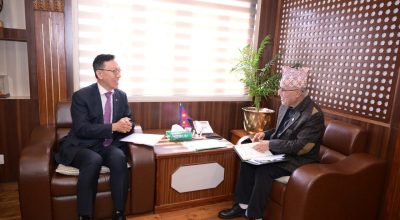 काठमाडौँ । अर्थमन्त्री रामेश्वरप्रसाद खनालसँग नेपालका लागि कोरिया गणतन्त्रका राजदूत पार्क ते यङले शिष्टाचार भेट गर्नुभएको छ । अर्थ मन्त्रालयमा