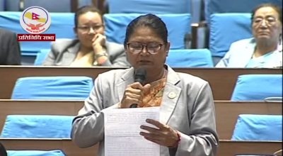 काठमाडौँ । राष्ट्रिय सभामा नेकपा (माओवादी केन्द्र) की सांसद गंगाकुमारी बेलवासेले राष्ट्रपति र उपराष्ट्रपति भइसकेको व्यक्ति पुनः राजनीतिमा आउन नपाउने