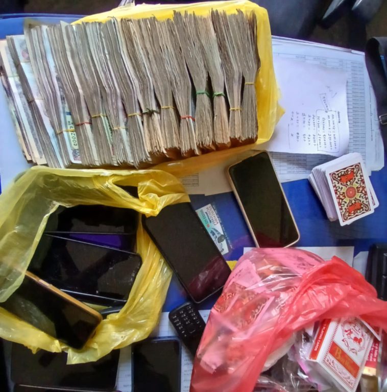 धरान: बराहक्षेत्र नगरपालिका– ३ नडाहास्थित एक घरमा जुवा खेलाइरहेको सूचना प्राप्त भएपछि धरानबाट परिचालन भएको प्रहरीको टोलीले रु.नौ लाख ६८ हजार नगदसहित १५ जनालाई पक्राउ गरेको छ । जिल्ला प्रहरी कार्यलयका प्रमुख सुमनकुमार तिमिल्सिनाका अनुसार जुवाको खालबाट १२ थान मोबाइल पनि बरामद गरिएको छ । अभियुक्तहरूलाई महेन्द्रनस्थित इलाका प्रहरी कार्यलयमा