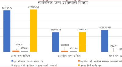 काठमाडौँ । सार्वजनिक ऋण दायित्व २७ खर्ब २४ अर्ब रुपैयाँ पुगेको छ । सार्वजनिक ऋण व्यवस्थापनको कार्यालयले सार्वजनिक गरेको तथ्यांकअनुसार