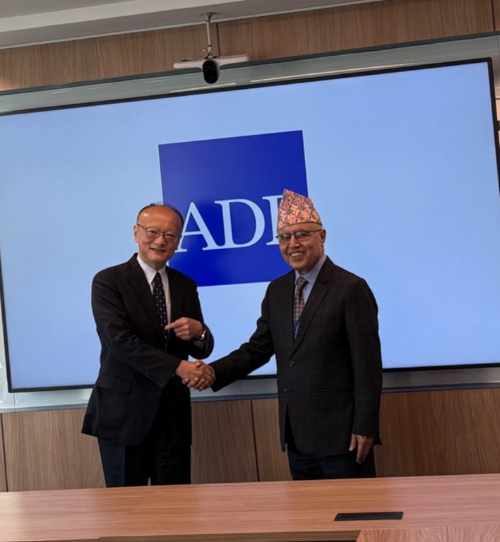 वाशिङ्टन डिसी, (अमेरिका) । विश्व बैंकको वार्षिक बैठकमा भाग लिन अमेरिकामा रहनुभएका अर्थमन्त्री रामेश्वरप्रसाद खनालले बुधबार एसियाली विकास बैंकका अध्यक्ष मासातो कान्डासँग भेटवार्ता गर्नुभएको छ । उक्त भेटका अवसरमा नेपालमा सञ्चालित परियोजनाको प्रगति, उपलब्धि र चुनौतीको बारेमा छलफल भएको यहाँस्थित राजदूतावासले जनाएको छ । भेटघाटमा अमेरिकाका लागि नेपालका राजदूत लोकदर्शन