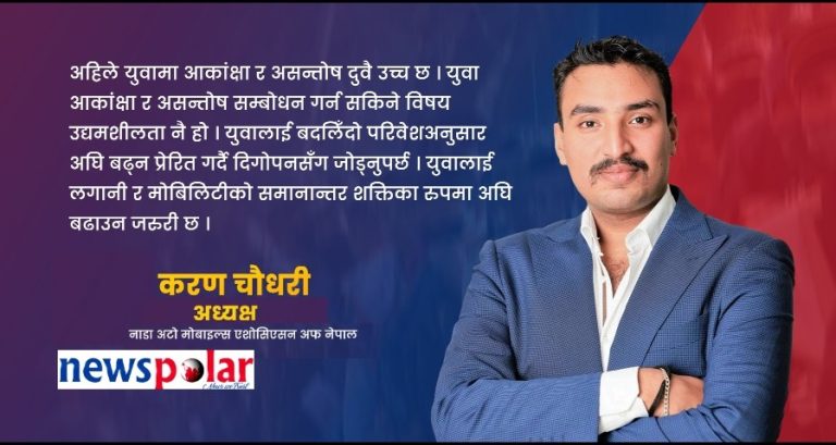 अहिले युवामा आकांक्षा र असन्तोष दुवै उच्च छ । युवा आकांक्षा र असन्तोष सम्बोधन गर्न सकिने विषय उद्यमशीलता नै हो । युवालाई बदलिँदो परिवेशअनुसार अघि बढ्न प्रेरित गर्दै दिगोपनसँग जोड्नुपर्छ । युवालाई लगानी र मोबिलिटीको समानान्तर शक्तिका रुपमा अघि बढाउन जरुरी छ । युवाशक्ति, ऊर्जाशक्ति र रुपान्तरण शक्तिको तीन धारमा
