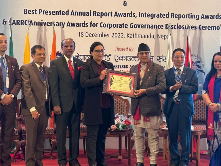 काठमाडौं । सनराइज बैंक लिमिटेड ‘सर्टिफिकेट अफ मेरिट’ बाट सम्मानित भएको छ । काठमाडौंस्थित होटल याक एण्ड यतिमा सम्पन्न भएको साउथ एसियन फेडेरसन एफ एकाउन्टेन्ट्स (साफा) को एक कार्यक्रममा निजी बैंकतर्फ ‘वेस्ट प्रेजेन्टेड एनुअल रिपोर्ट अवाड्स २०२१’ बाट सनराइज बैंक सम्मानित भएको हो । सो कार्यक्रममा उक्त कार्यक्रममा बैंकका तर्फबाट