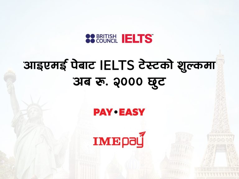 काठमाडौं । नेपालको पहिलो डिजिटल वालेट आइएमई पेले आईईएलटीएस टेस्टको शुल्क भुक्तानीमा रु १००० छुट सुविधालाई हालै सार्वजनिक गरेको थियो। सो सुविधालाई अझ परिस्कृत गर्दै सेवाग्राही माझ प्रवर्दन गर्नको लागि आइएमई पेले आईईएलटीएस टेस्ट शुल्कमा फ्ल्याट रु २००० क्यासब्याक प्रदान गर्ने योजना सार्बजनिक गरेको हो । सेवाग्राहीहरुले यो क्यासब्याक सुविधा