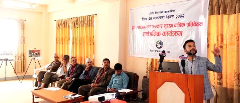 काठमाडौं । नेपाल पत्रकार महासंघका अध्यक्ष विपुल पोखरेलले निर्वाचन आयोगले जारी गरेको आचारसंहितालाई पत्रकारहरुले मान्न जरुरी नरहेको बताउनुभएको छ । विश्व प्रेस स्वतन्त्रता दिवस २०२२ को अवसरमा नेपाल पत्रकार महासंघले आयोजना गरेको प्रेस स्वतन्त्रता तथा पत्रकार सुरक्षा वार्षिक प्रतिवेदन सार्वजनिकिकरण कार्यक्रमलाई सम्बोधन गर्दै अध्यक्ष पोखरेलले निर्वाचन आयोगले बनाएको आचारसंहितामा अभिव्यक्ति