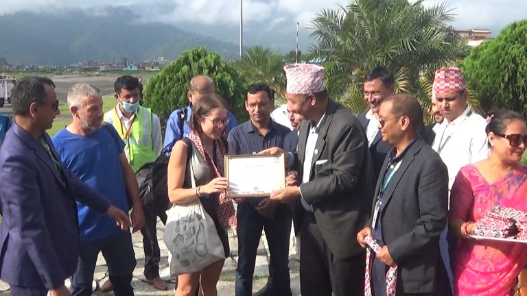 कास्की । पोखरा विमानस्थलमा पर्यटकलाई बाजागाजासहित स्वागत ४३ औँ पर्यटन दिवशको अवसर पारेर पोखरा भित्रिने पर्यटकलाई स्वागत गरिएको छ । पोखरामा पर्यटन, उद्योग, वाणिज्य तथा आपूर्ति मन्त्रालय गण्डकी प्रदेश, नेपाल पर्यटन बोर्ड गण्डकी प्रदेश र पोखरा पर्यटन परिषद्को संयुक्त आयोजनामा मंगलवार पोखरा विमानस्थलमा पहिलो उडानमार्फत पोखरा पुगेका पर्यटकहरुलाई बाजागाजासहित स्वागत