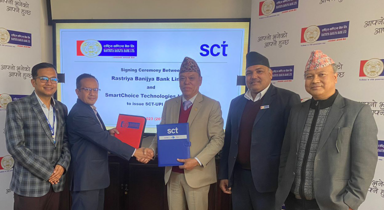 काठमाडौँ । नेपाल राष्ट्र बैंकबाट भुक्तानी प्रणाली संचालकको अनुमती प्राप्त स्मार्टच्वाईस टेक्नोलोजिज लिमिटेड( SCT) तथा ‘क’ वर्गको वाणिज्य बैंक राष्ट्रिय वाणिज्य बैंकवीच एससीटी युपीआइ (SCT-UPI) डेबिट कार्ड सेवा संचालनको लागि सम्झौता सम्पन्न भएको छ । सम्झौता पत्रमा स्माटच्वाईस टेक्नोलोजिज लिमिटेडका तर्फबाट प्रमुख कार्यकारी अधिकृत श्री नारायण प्रकाश भुजु र राष्ट्रिय