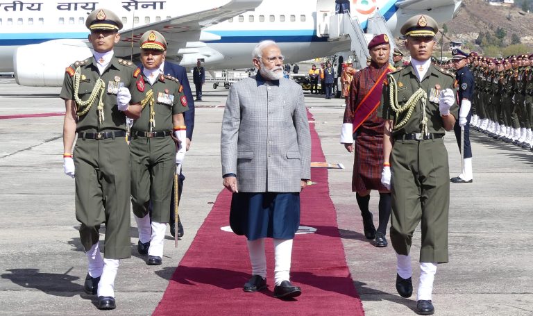नयाँदिल्ली: भारतीय प्रधानमन्त्री नरेन्द्र मोदी भुटानको दुई दिने राजकीय भ्रमणका लागि शुक्रबार भुटान पुग्नु भएको छ । भारतीय प्रधानमन्त्री मोदीलाई भुटानका समकक्षी छिरिङ तोब्गेले पारो अन्तराष्ट्रिय बिमानस्थलमा स्वागत गर्नुभएको छ । भ्रमणको क्रममा प्रधानमन्त्री मोदीले भुटानका राजा जिग्मे खेसर नामग्याल वाङचुक र उहाँका समकक्षी छिरिङ तोब्गेसँग भेटवार्ता गर्ने भारतीय विदेश