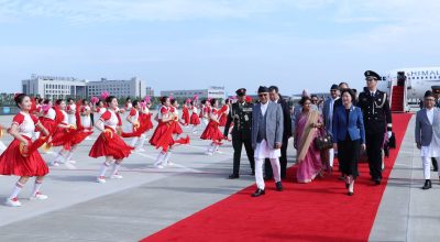 प्रधानमन्त्री ओली स्थानीय समय अनुसार दिउँसो ३;१५ बजे हिमालय एयरलाइन्सनको विशेष विमानमार्फत थियानजिन विनहाइ अन्तर्राष्ट्रिय विमानस्थलमा आइपुग्नुभएको हो ।
