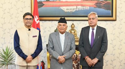 राष्ट्रपति रामचन्द्र पौडेलसँग नेपाल भ्रमणमा रहनुभएका भारतीय विदेश सचिव विक्रम मिस्रीले राष्ट्रपति भवन शीतल निवासमा आइतबार शिष्टाचार भेट गर्नुभएको छ