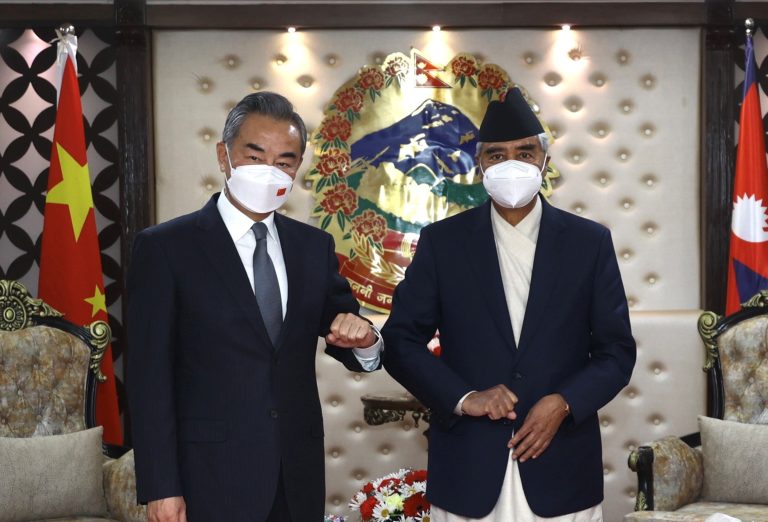 काठमाडाैं । प्रधानमन्त्री शेरबहादुर देउवासँग चीनका राज्यपरिषद् सदस्य एवं परराष्ट्रमन्त्री वाङ यीले शिष्टाचार भेटवार्ता गर्नुभएको छ । प्रधानमन्त्री निवास बालुवाटारमा आज साँझ एक घण्टा भएको भेटमा उहाँहरुबीच द्विपक्षीय आपसी हितका विविध विषयमा कुराकानी भएको परराष्ट्रमन्त्री डा नारायण खड्काले जानकारी दिनुभयो । भेटमा नेपाल र चीनबीचको सम्बन्ध पुरानो तथा मैत्रीपूर्ण रहेको,