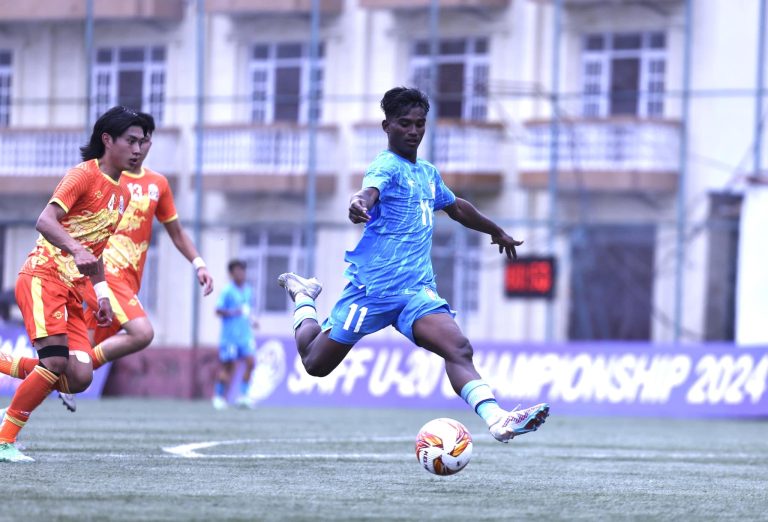 काठमाडौँ । साबिक विजेता भारतले साफ यु–२० च्याम्पियनसिपमा भुटानलाई पराजित गर्दै प्रतियोगितामा सुखद सुरुआत गरेको छ । सातदोबाटोस्थित एन्फा कम्प्लेक्समा आज भएको खेलमा भारतले भुटानमाथि १–० को जित हासिल गर्दै प्रतियोगितामा सुखद सुरुआत गरेको हो । भारतका लागि मोनिरूल मोल्लले गोल गरे । उनले खेलको ३७औँ मिनेटमा गरेको एक गोल