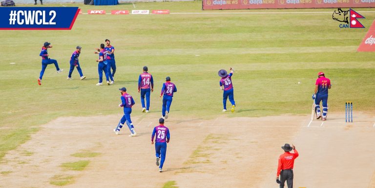 काठमाडौँ । आईसीसी विश्वकप लिग टूको अन्तिम त्रिकोणात्मक सिरिज अन्तर्गत नेपालले सानदार जित निकालेको छ । आइतबार कीर्तिपुरस्थित टियु मैदानमा सम्पन्न खेलमा घरेलु टोली नेपालले यूएईलाई १७७ रनले हराएको हो । २४९ रनको विजयी लक्ष्य पछ्याएको यूएईले २२.५ ओभरमै अलआउट हुँदै ७१ रनमात्र जोड्न सक्यो । यूएईका आर्यान अफ्जल खानले