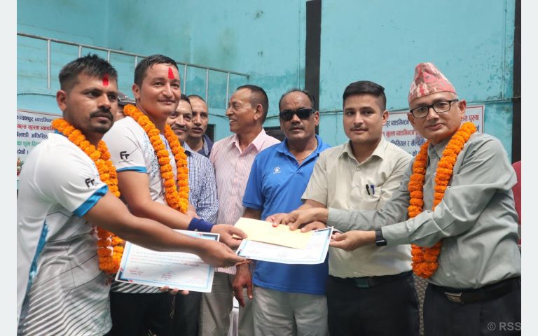 महेन्द्रनगर । कञ्चनपुरको महेन्द्रनगरमा जारी जिल्ला स्तरीय पुरुष खुल्ला डबल्स ब्याडमिन्टन प्रतियोगिताको उपाधि महेशप्रसाद भट्ट र दिपक खत्रीको जोडीले जितेको छ । महेन्द्रनगरस्थित कभर्डहलमा आज सम्पन्न फाइनल खेलमा राजेन्द्र थापा र टङ्कप्रसाद भट्टको जोडीलाई सोझो सेटमा पराजित गर्दै भट्ट र खत्रीको जोडी विजयी भएको हो । कञ्चनपुर जिल्ला ब्याडमिन्टन सङ्घको
